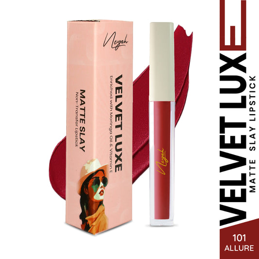 Velvet Luxe Matte Slay Non-Transfer Lipstick – Enriched with Moringa Oil & Vitamin E